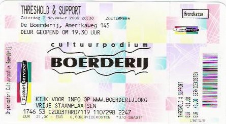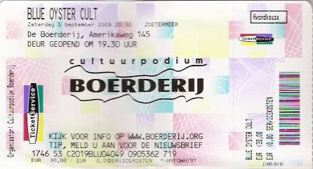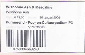 Zo'n ticket service kaartje is wat maar zo'n E-ticket heeft natuurlijk helemaal geen charme. Toch helemaal naar Purmerend om Wishbone Ash te zien. Blijkt Purmerend inderdaad best ver te zijn maar wel goed te bereiken met de trein vanuit Utrecht. We hadden nog treinkaartjes tot Amstel, goed genoeg om mee in A'dam Centraal te komen. Vergeten we daar nog bijna een kaartje te kopen voor Purmerend, werd het toch nog haasten om de geplande trein te halen, want op dat soort momenten staat er altijd iemand met muntgeld te kloten bij de kaartjesautomaat. In Purmerend aangekomen hadden we de tent vlot gevonden want het is vlak bij het station. Ondanks dat het even duurde tot ik dat door had terwijl de knipperende neon verlicht met P3 en Wishbone Ash niet was te missen. Het was nog niet druk dus een treintje later had ook gekund. We kwamen trouwens binnen zonder onze kaartjes te tonen omdat de deuren naar de zaal nog gewoon open waren, dus jammer dat we kaarten in de voorverkoop hadden gehaald. Eerst speelde Mescaline, best een aardig voorprogramma, wat het geweldig maakte was de verschijning van Dany Lademacher, (o.a. van Herman Brood and his Wild Romance). De man blijkt nog steeds geweldig te kunnen spelen. Daarna is het de beurt aan Wishbone Ash, die het gehele Argus album integraal ten gehore brengen naast Engine en You see red. Zoals altijd een geweldig optreden van The Ash. Leuke zaal de P3 maar de volgende keer mag het ook dichter bij huis.