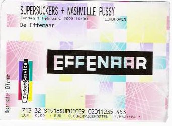 Een tenenkrommende eerste band genaamd de Hummingbirds, vooral de drummer die om de haverklap (zo'n 300x heb ik geturfd) de bijzonder geestige vondst "Wa zittie, rock zittie" uitkraamt, na twee minuten begon de boel al te vervelen; hoogtepunt van de avond: Nashville Pussy, weliswaar stond de Marshal van mevr. Ruyter letterlijk op elf waardoor je vlak voor het podium de rest van de band nauwelijks hoorde, verder naar achteren was het geluid beter en de tieten van mevr. Ruyter zijn zo kollosaal dat je die van achter in de zaal ook nog wel ziet. Vooraf werd bij alle versterkers een paar glaasjes Jaegermeister neergezet, als opkikker mocht de artiest er even door zitten. Dat bleek niet nodig want het optreden knalde weer van alle kanten, waarom NP geen hoofdprogramma was is me een raadsel! Temeer, de SuperSuckers hun naam eer aan doen. Vooraf had ik gehoopt een goeie band te ontdekken maar nee, net wat minder vervelend dan de Kolibries. Ook van die slaapverwekkende opmerkingen, we're the best rock'n roll band in the world, helaas zonder de zelfspot van Nashville Pussy en muzikaal werd de opmerking ook niet gestaafd. De bassist poogde nog de zaal op z'n hand te krijgen met een mop, maar die bleek zo flauw dat iedereen hem apatisch aanstaarde, wat hem de opmerking ontlokte "you speak English?". De zanger kon de situatie wel waarderen want die stond z'n bassist gewoon uit te lachen. Voordeel was wel dat we zonder morren de trein van 23.02 konden halen na eerst nog een bier te scoren in de Kiosk, dus ook de thuisreis verliep gesmeerd.