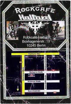 Naderhand brengen we nog een bezoek aan Rockcafe Halford ergen in Friedrichshain, lopen verdomme de hele straat uit, terwijl het zich aan het begin van de straat bevindt, de levensgrote Halford pop voor de deur was ons collectief ontgaan. Leuke rock tent vol met Judas Priest verzamelobjecten, en de eigenaar lijkt zelfs op Halford. Ik bestel een Slayer cocktail, een van de vele cocktails met namen van Metalbands, aanradertje, jammer dat er geen Slayer gedraaid wordt. Grappig dat ook Udo Dirkschneider (zanger van UDO en Accept) in deze tent z'n biertje komt drinken. De volgende zondag speelt Udo in Berlijn, helaas missen we dat want hoewel de DB goed z'n best doet om ons langer in Berlijn te houden door een megatreinvertraing, staan we bij de Columbia Club voor de verkeerde deur, Udo blijkt heel ergens anders te spelen, helaas.